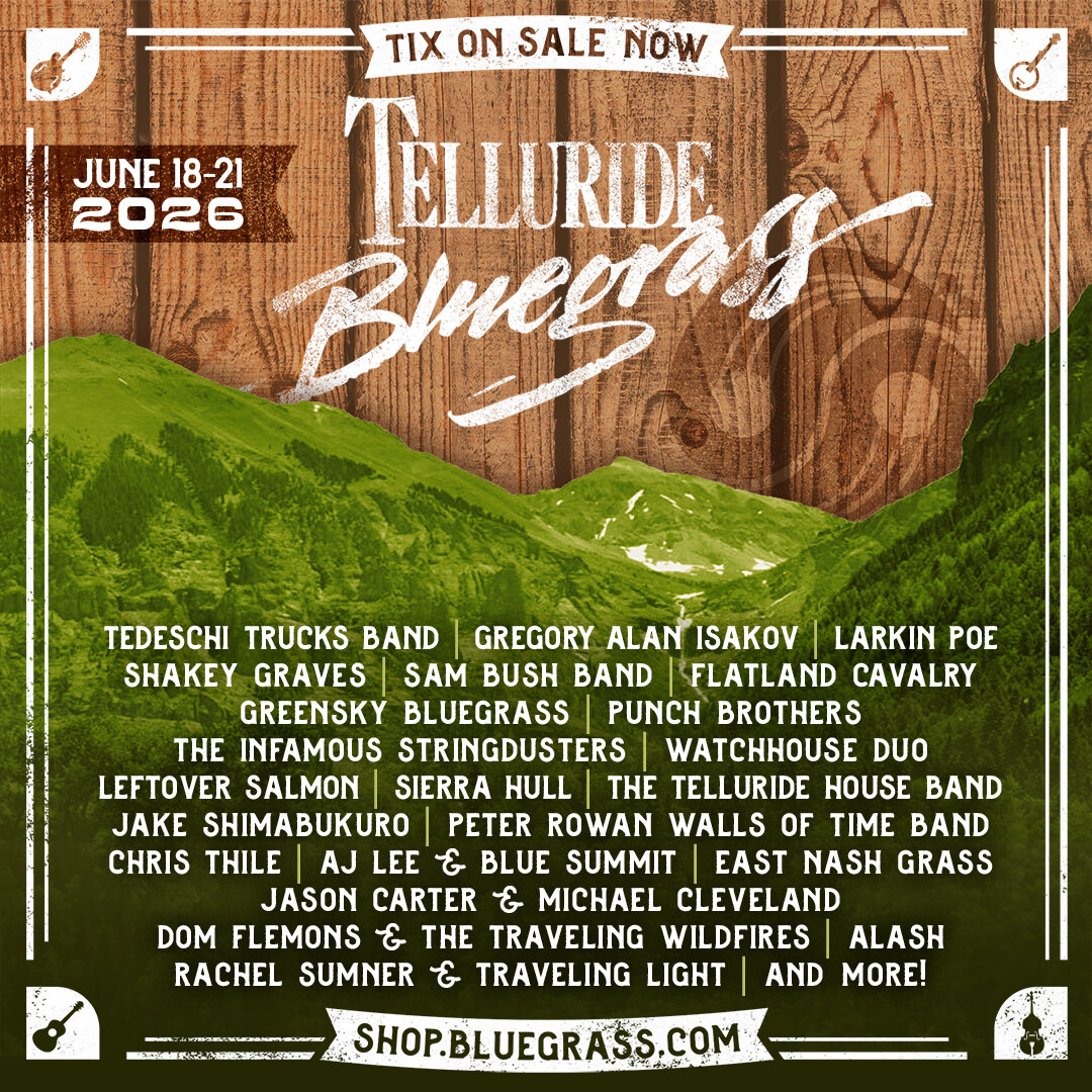 Jake is a very nice new addition! We’ve been wanting to see him play for years! Especially since Monica is a Uke player! I’m always happy to catch Salmon, we love Sierra Hull, and Larkin Poe will be super cool. Obviously stoked about the other TBF regulars especially Sam and the Dusters! And for us it wouldn’t be right if Punch Brothers weren’t there. Great start to the line-up!